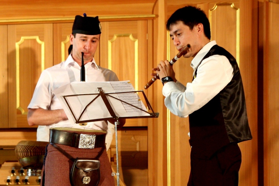 The Regiment’s musicians - Mr Gary Anderson (bagpiper), Mr Andrew Withers (drummer), and Mr Robert Green (bagpiper and highland dancer) were delighted to be invited to play alongside Uzbek musicians, the prize-winner of International music competitions Mr Bekzod Turaev (nay), Mr Nasriddin Ruziev (koshnay) and Mr Abdulla Ubaydullaev (doira and nagora). Both groups of musicians played samples of their national music and also played together in an improvised jamming session which led to a fascinating blend of both musical traditions. The programme of the concert also included a Highland Fling performed by Robert Green.