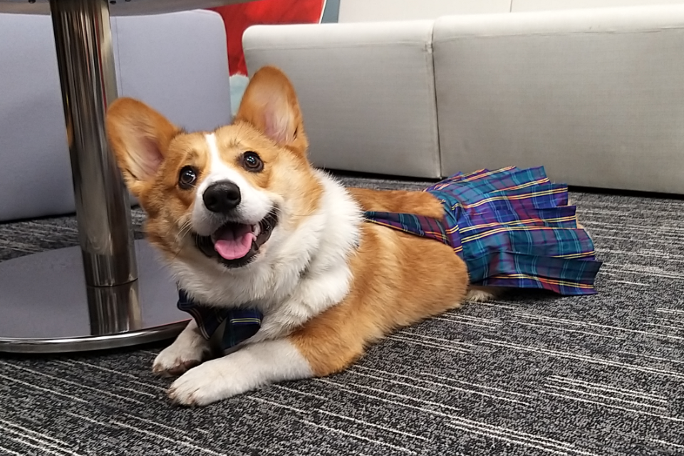 Kylo the corgi dressed for the occasion during his visit at the British Embassy in Asunción.