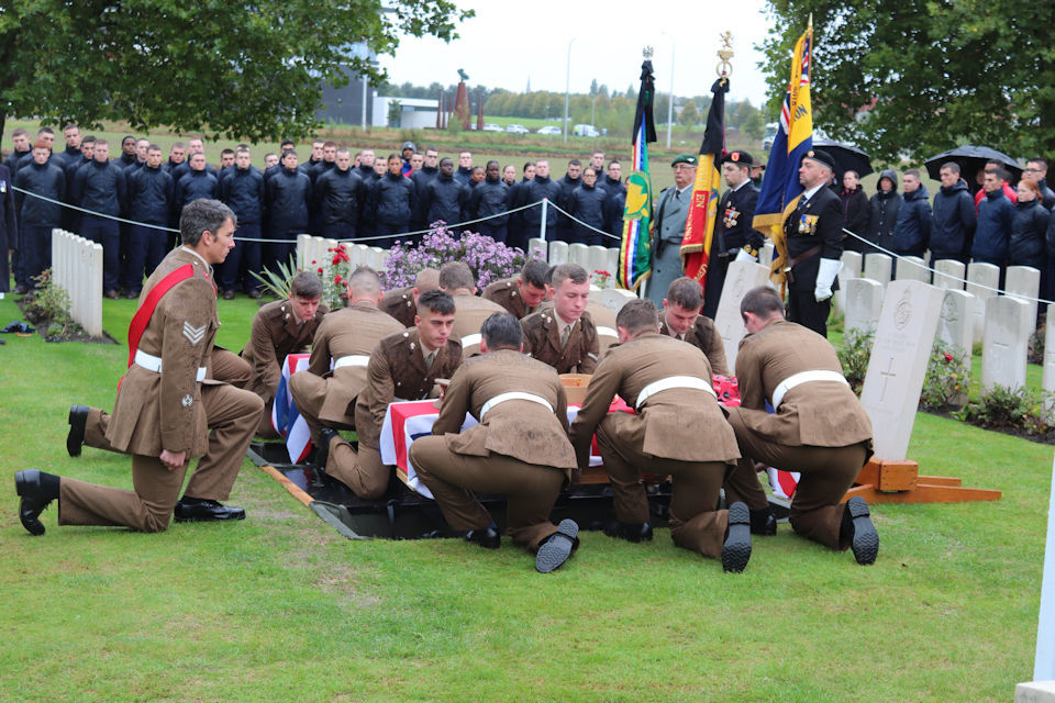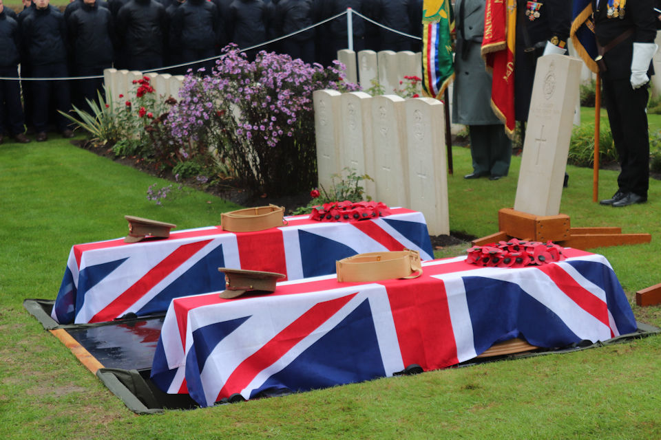 Nineteen of the twenty-four soldiers found were buried with full military honours on 28 September 2017. Five were not buried at the time as it was thought that they may be identifiable. This included the two Fusiliers.