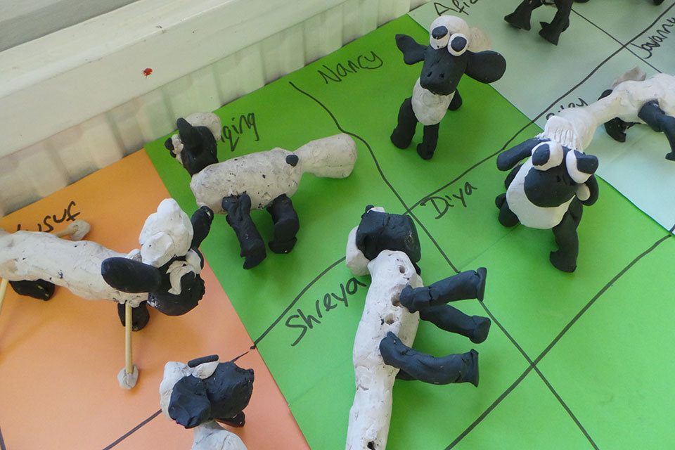The pupils' models of Shaun the Sheep.