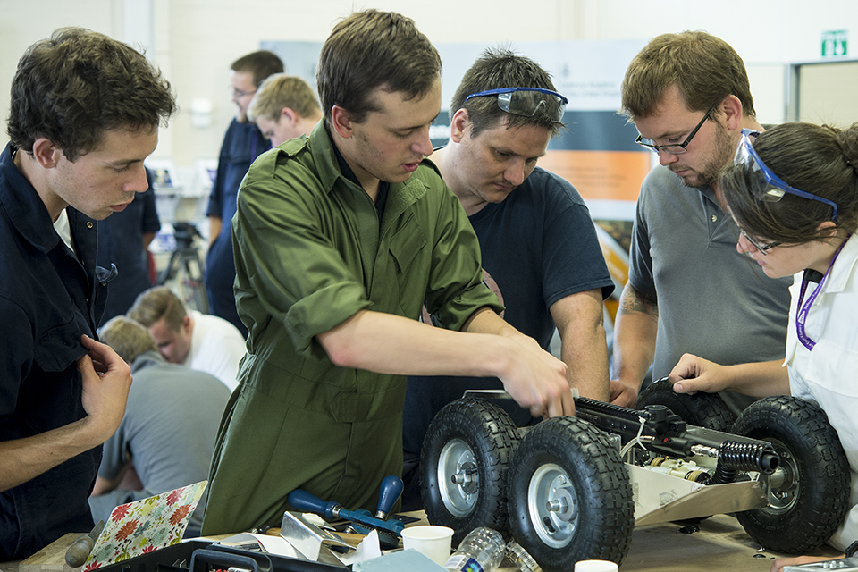 A team of defence engineering apprentices working on a project during the Tom Nevard MOD Apprentice Competition in August 2014 [Picture: Andrew Linnett, Crown copyright]