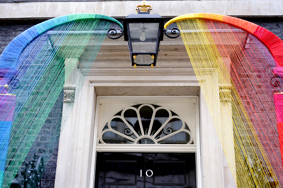 Guests entering the reception would have noticed the door to No10 has been decorated with a rainbow installation ‘Pride X 10’ designed by the artists Louisa Loizeau and Hattie Newman.