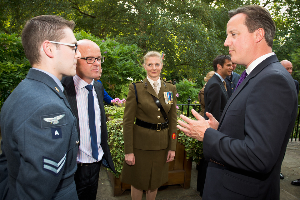 The Prime Minister speaking to reservists and employers at the armed forces reception at 10 Downing Street [Picture: Sergeant Paul Shaw LBIPP, Crown copyright]