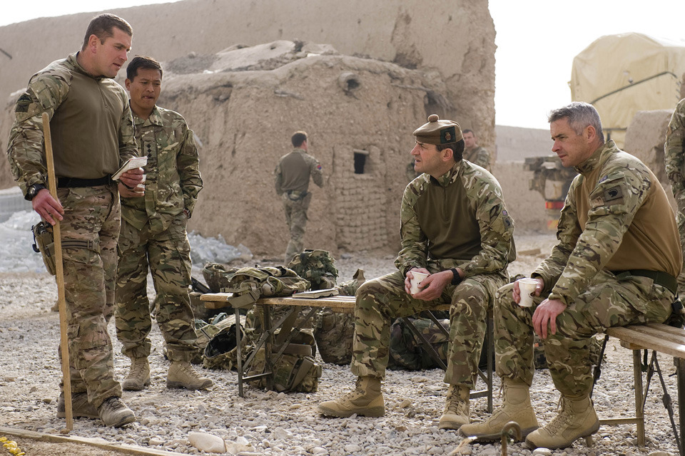 Major Shane Burton briefs Brigadier Bob Bruce on the local security situation at Patrol Base 4 in Helmand's Nad 'Ali district (library image) [Picture: Corporal Jamie Peters, Crown copyright]