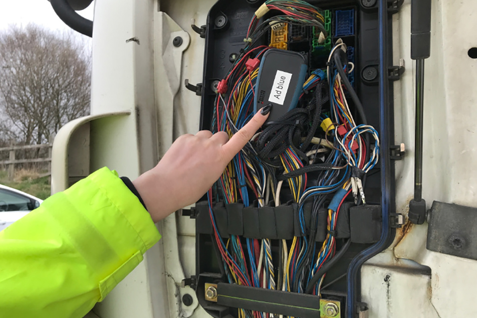 DVSA examiners will be checking lorries for emissions cheat devices, such as the AdBlue emulator seen attached to this vehicle.