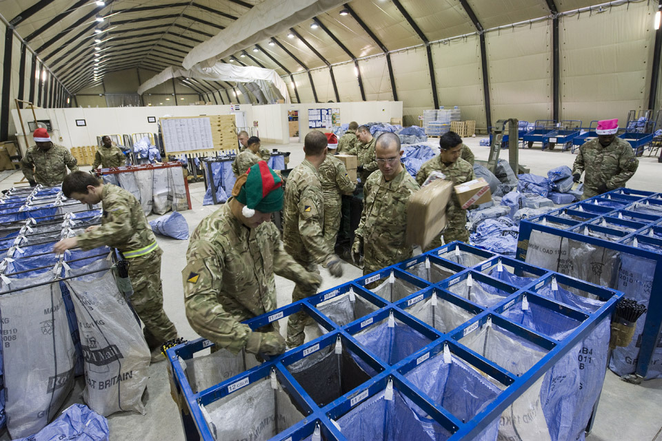 Soldiers from the Royal Logistic Corps work through the early hours of Christmas Day 2012 to sort through mail from the UK (library image) [Picture: Corporal Jamie Peters, Crown copyright]