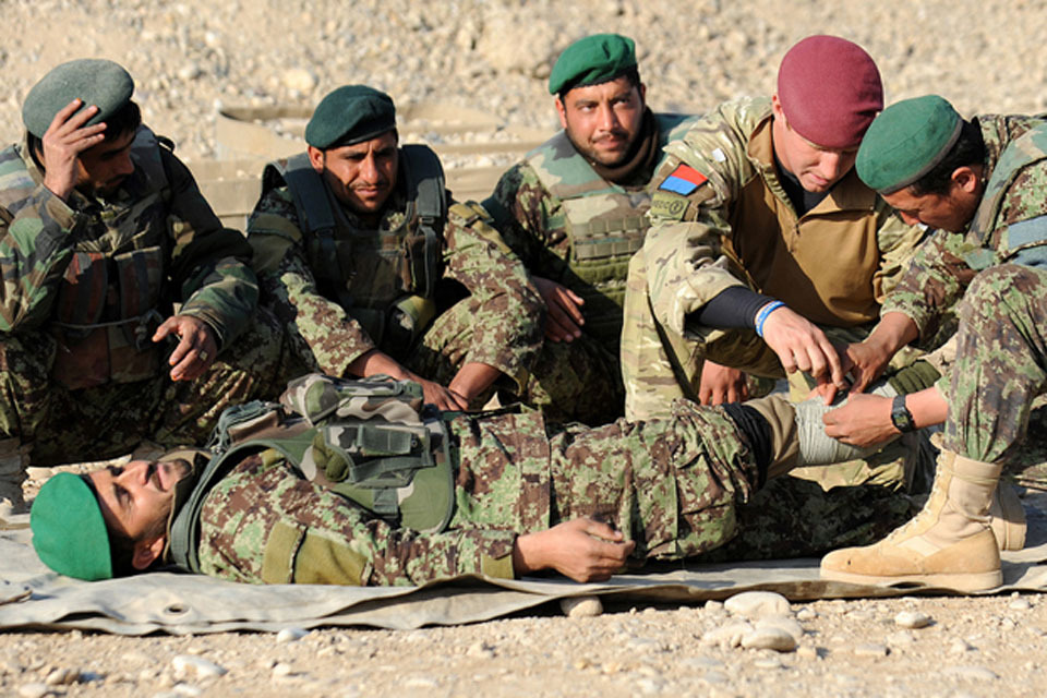 A British Army medic trains Afghan soldiers to apply field dressings (library image) [Picture: Sergeant Rupert Frere, Crown Copyright/MOD 2011]