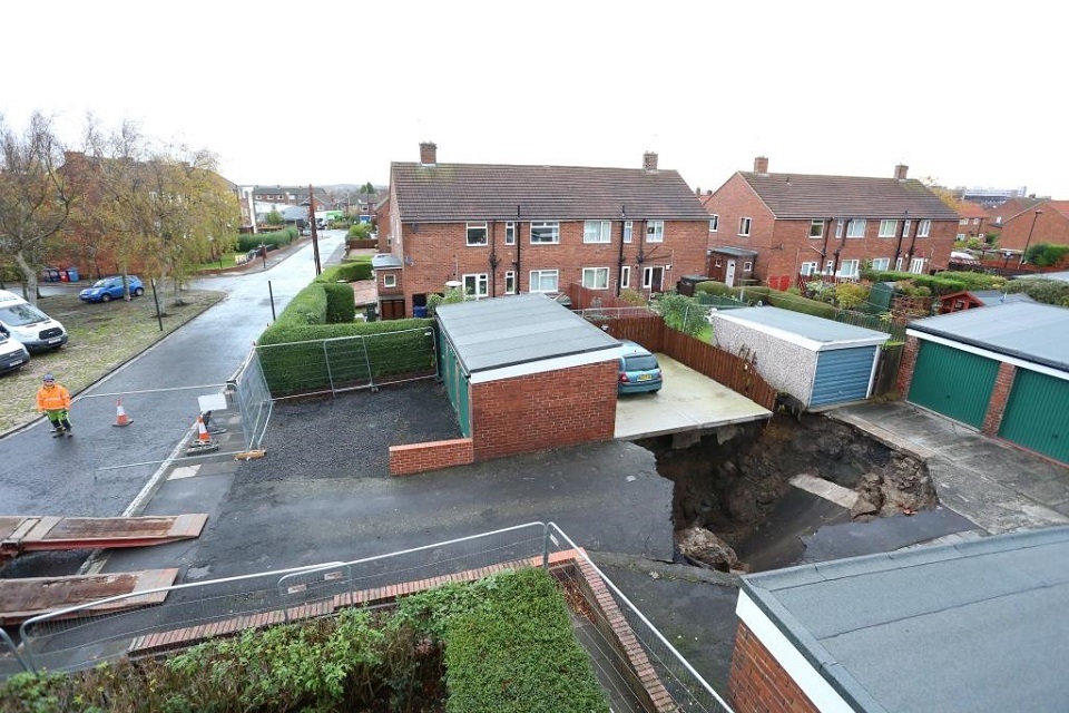 Ground collapse near homes and garages in Gosforth, Newcastle upon Tyne