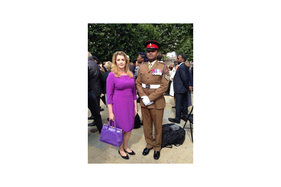Sergeant Johnson Beharry VC with Penny Mordaunt at ceremony at Brent