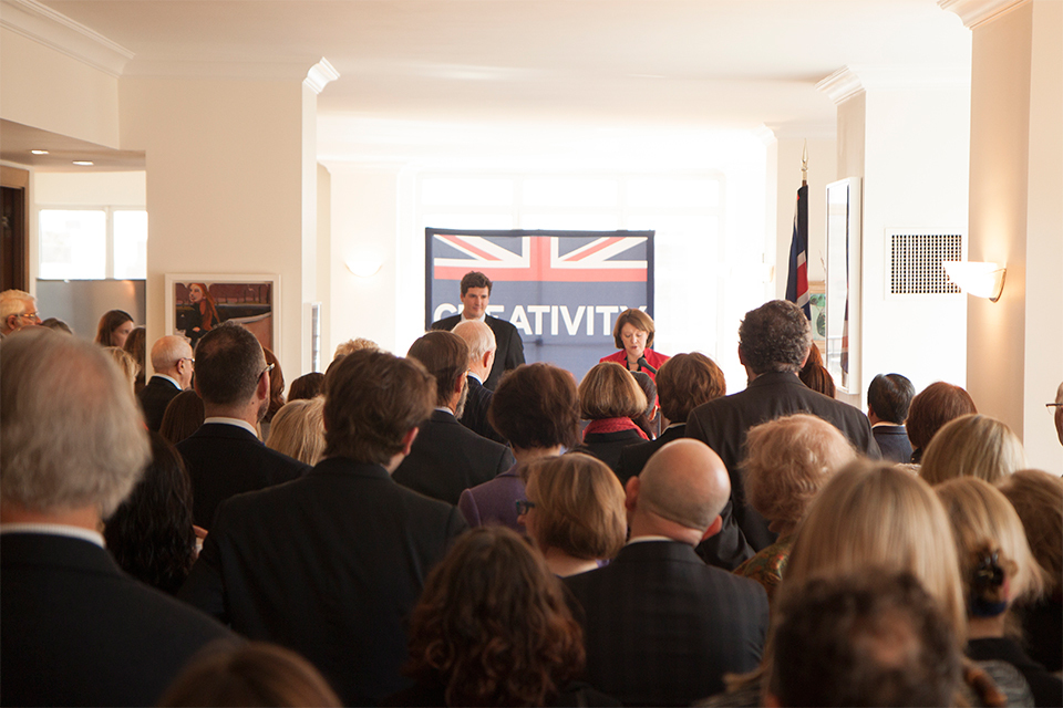 Maria Miller addresses supporters of British cultural institutions at the British Residence in New York.