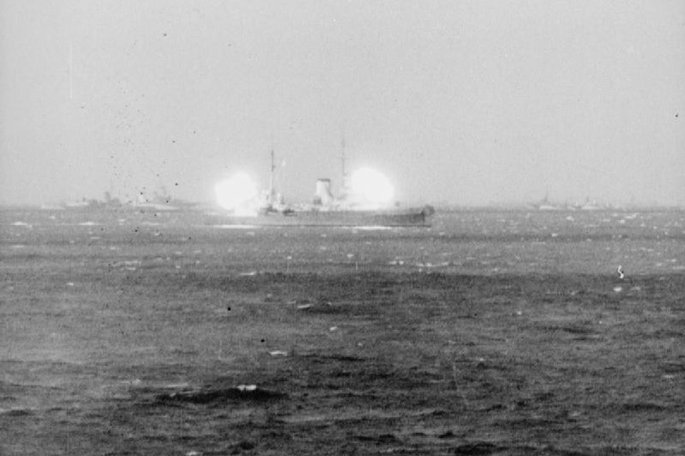 HMS Orion firing a broadside off the Normandy beaches [Picture: Imperial War Museum FLM 4021]