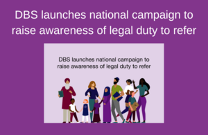 The Disclosure and Barring Service (DBS) has launched a new national campaign to raise awareness of the legal duty to refer - the process organisations must follow by law when there are safeguarding concerns about individuals in regulated activity.