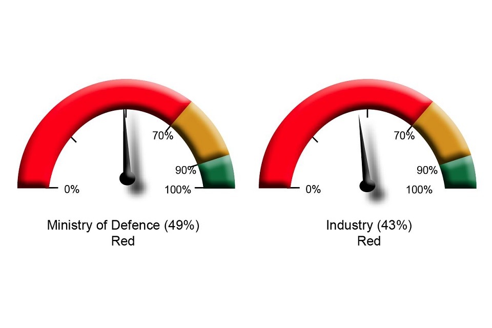Using a traffic light system of Red Amber Green, the SSRO found that six out of eight indicators flashed up ‘Red’. One indicator reports that only 9 per cent of MOD contractors’ reports provided the required information.