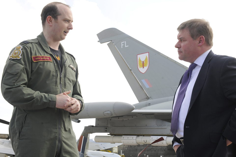 Flight Lieutenant Ben Durham talking to Armed Forces Minister Mark Francois during his visit to RAF Leuchars [Picture: Corporal Dave Blackburn RAF, Crown copyright]