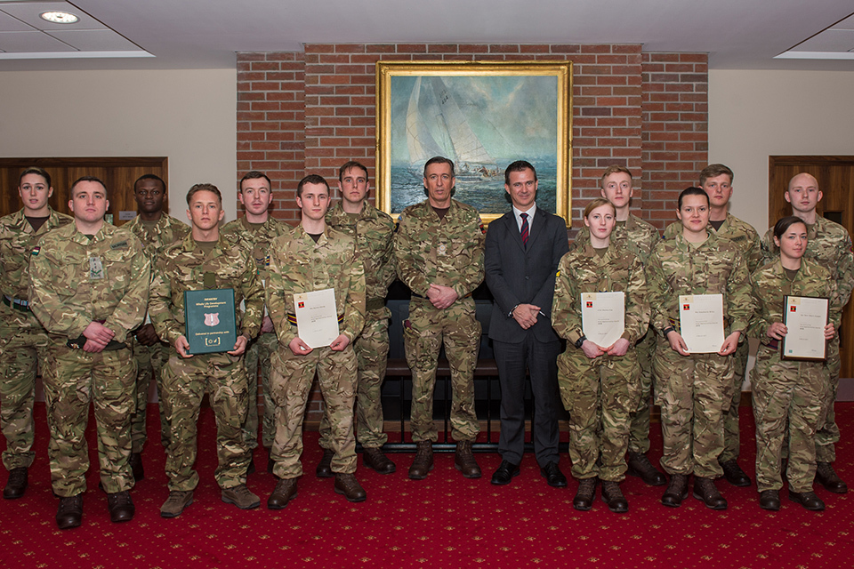 Defence Minister Mark Lancaster introduced some of the highest performing soldier apprentices. Crown copyright.