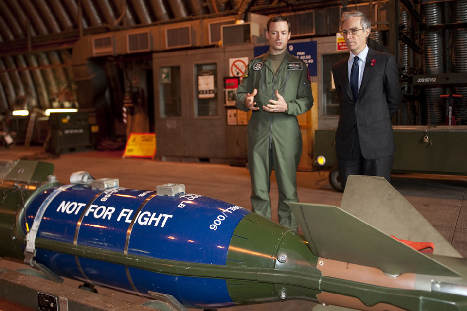 Dr Andrew Murrison is shown aerial munitions at RAF Lossiemouth [Picture: Senior Aircraftman Connor Payne, Crown copyright]