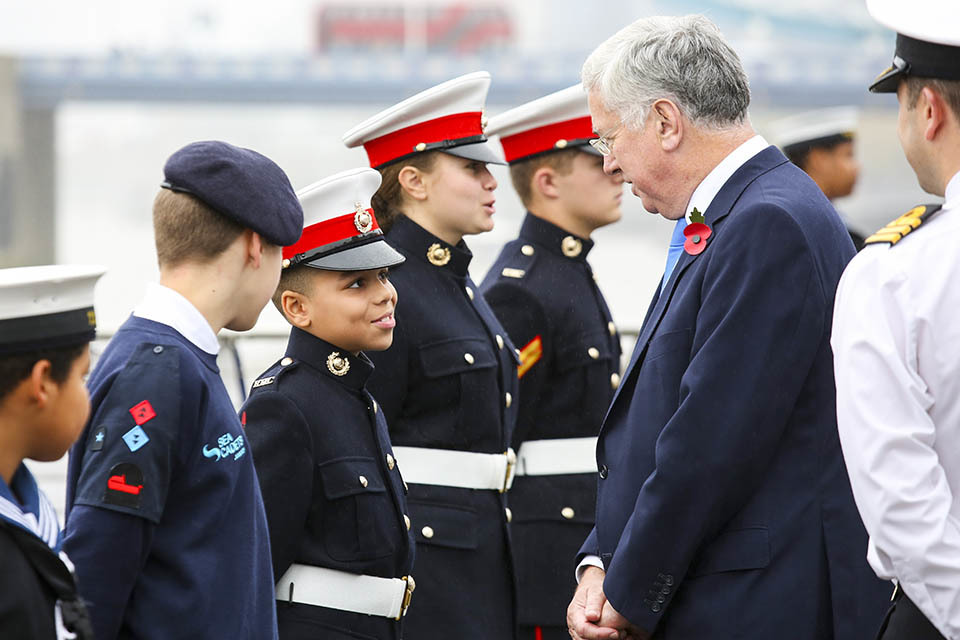 The Defence Secretary spoke to members of the Sea Cadets at HMS President