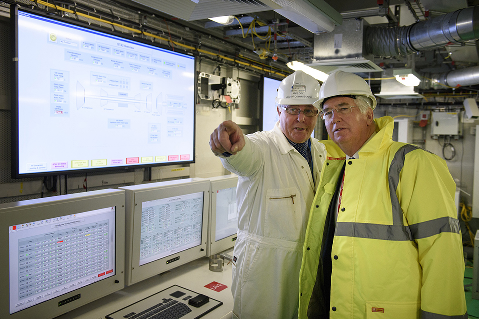 On a visit to Rosyth, the Defence Secretary toured the in-build aircraft carrier, HMS Queen Elizabeth, as the ship’s gas turbines were fully up and running for the first time. These turbines are amongst the most powerful in the world and will provide the ship with enough energy to light up a town the size of Dundee and to take the giant 65,000 tonne ship up to its top speed while at sea.