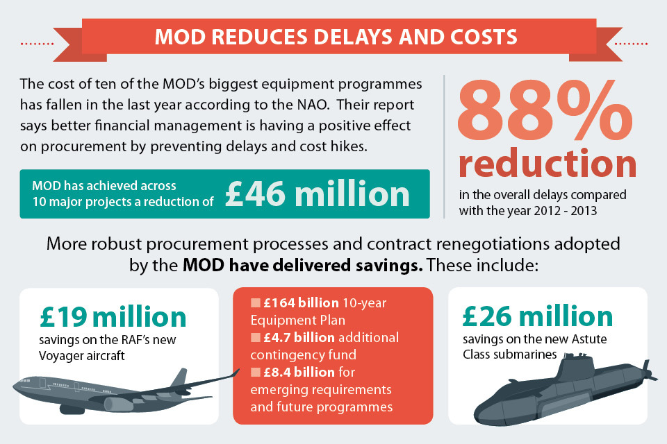 Graphic summarising the improved situation as regards MOD's biggest equipment programmes [Picture: Crown copyright]