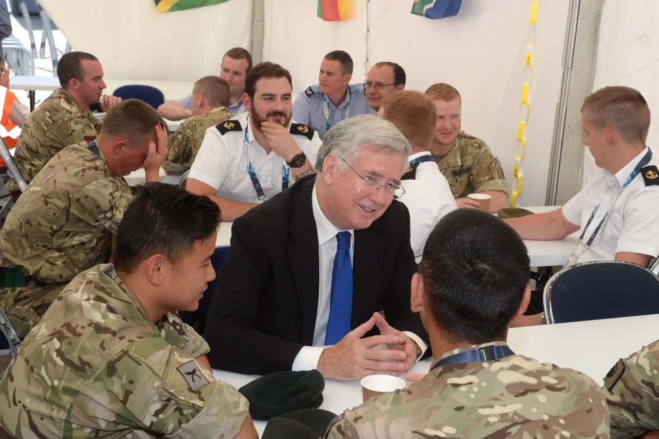 Defence Secretary Michael Fallon chatting to members of the military venue security force [Picture: Mark Owens, Crown copyright]