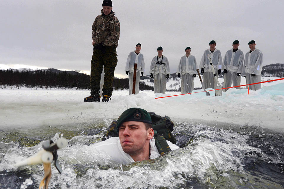 Exercising in the harsh environment within the Arctic Circle, where temperatures can dip to -40°C, helps prepare the marines for survival and fighting anywhere in the world.