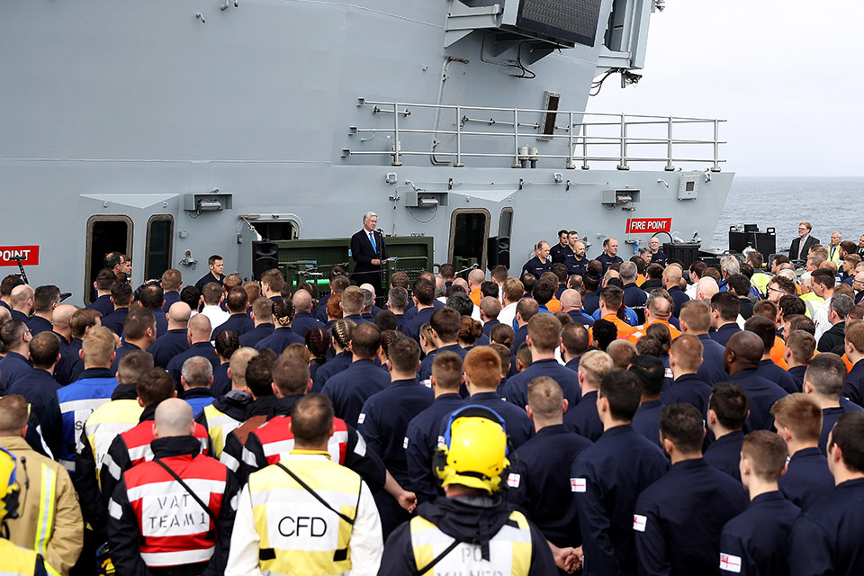 While addressing the Ship’s Company, Sir Michael announced the Britain’s second aircraft carrier, HMS Prince of Wales, will be officially named at a ceremony in Rosyth on 8th September 2017.