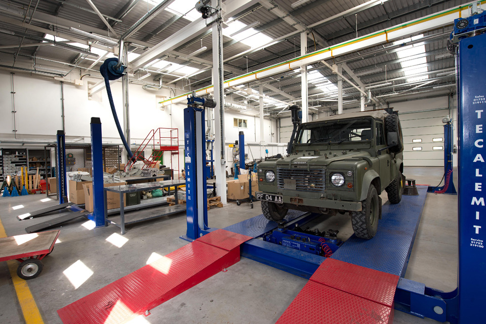 Vehicle bays inside the new motor transport workshops at CTCRM Lympstone [Picture: Crown copyright]