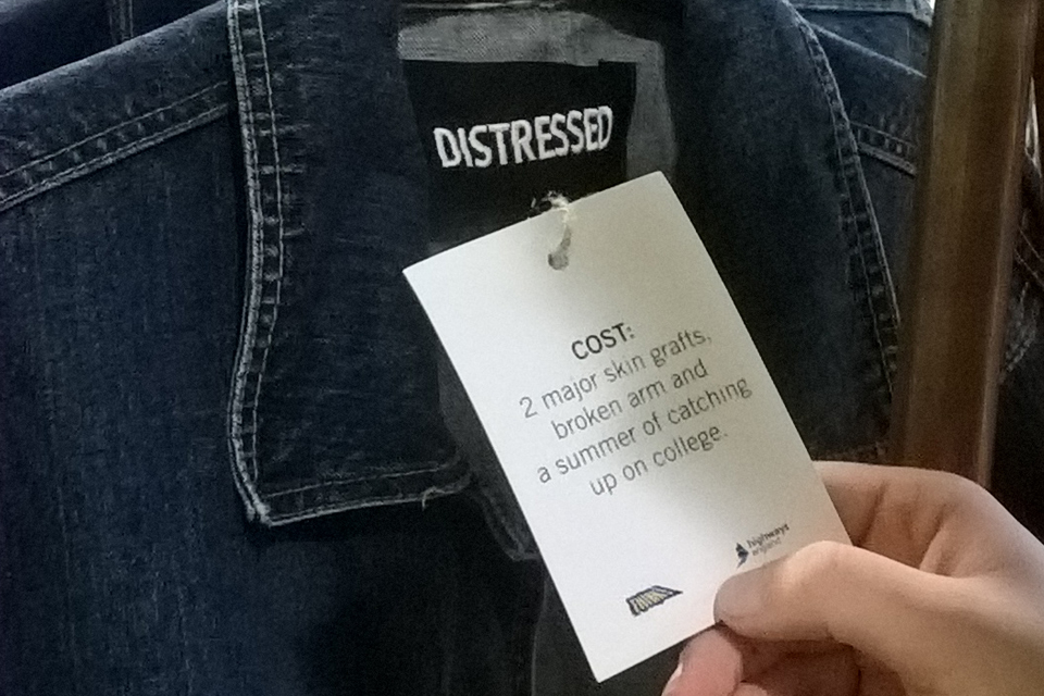 The initiative centres on the concept of a clothing range where each garment has a unique price tag – the difference being instead of monetary value the cost lists a range of injuries or hospital treatments that a young rider could face as a result of an accident.