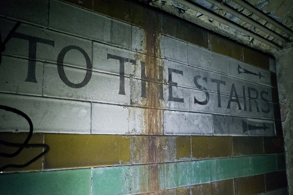 The sign on this doorway deep underground in Brompton Road station still warns of wartime hazards long after their removal (library image) [Picture: Shell Daruwala, Crown copyright]