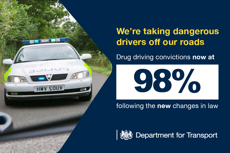 We’re taking dangerous drivers off our roads. Drug driving convictions now at 98% following the new changes in law.