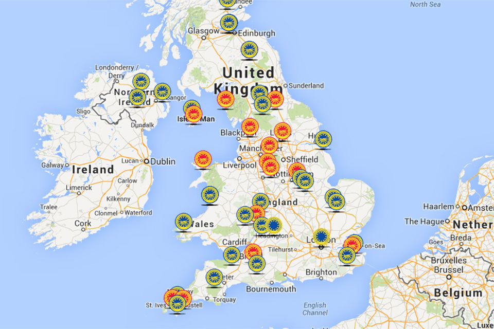 On the route you can find producers of protected cheeses Swaledale Cheese, Yorkshire Wensleydale, Dovedale blue, and Beacon Fell Traditional Lancashire, as well as Fenland Celery, Newmarket Sausage, and Yorkshire Forced Rhubarb. To find out more about these foods and to find out which Protected Food Names are in your region, look at our map of Protected Food Names in the UK