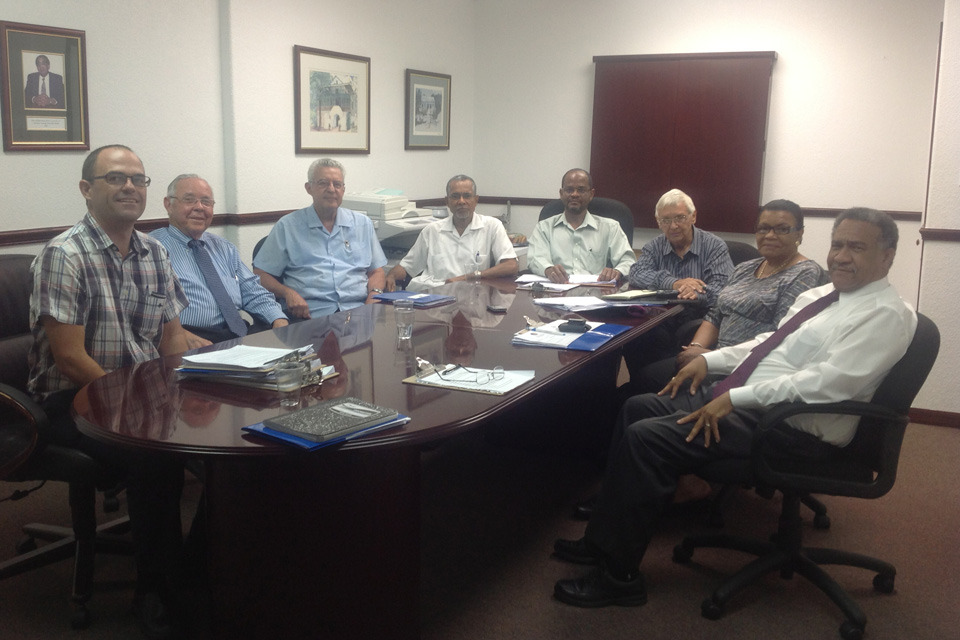 The Domestic Observer Team. From left: Tom Hines, Norman Bodden, John Macmillan, Pastor Alson Ebanks, Adrian Estwick, Carol Winker, Georgette Myrie and Gilbert Connolly
