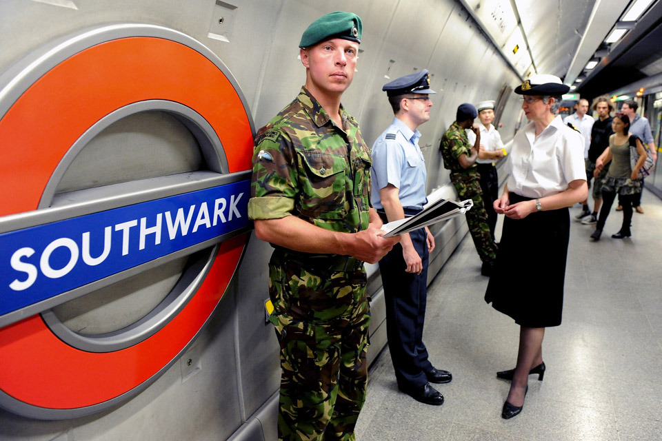 Reservists from the Army, Navy and Air Force travelling to work in military clothing as part of the annual Uniform to Work Day [Picture: Petty Officer Airman (Photographer) Mez Merrill, Crown Copyright/MOD 2010]