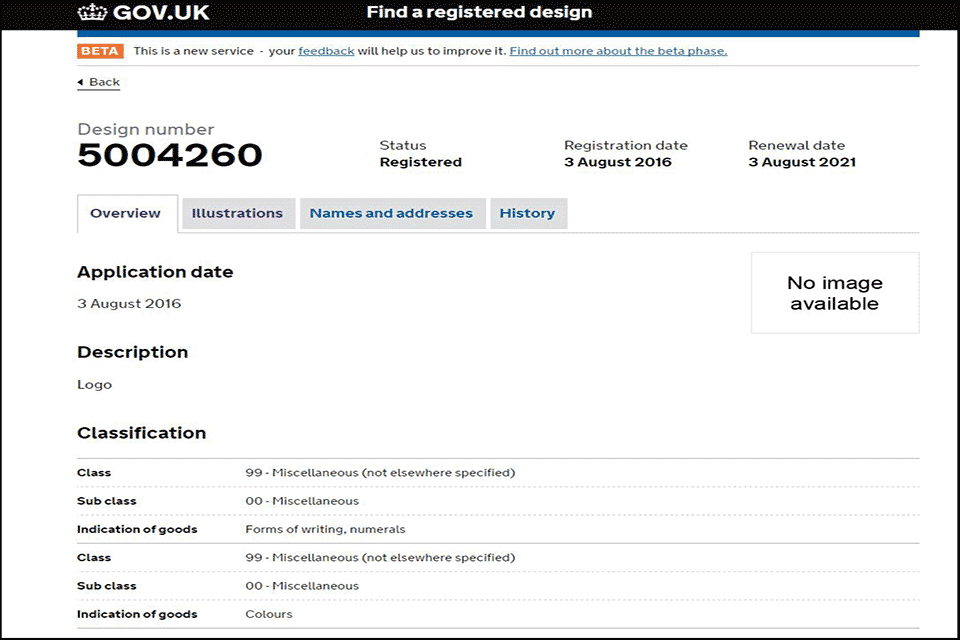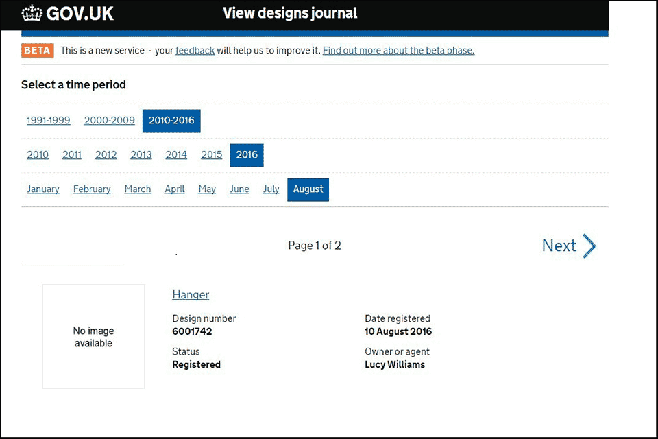 We have removed the option to search via a proprietor or Locarno and users choosing to search via these options will be directed to the EUIPO search service DesignView. In addition to doing an advanced search of UK registrations, DesignView allows customers to search EU and worldwide offices.