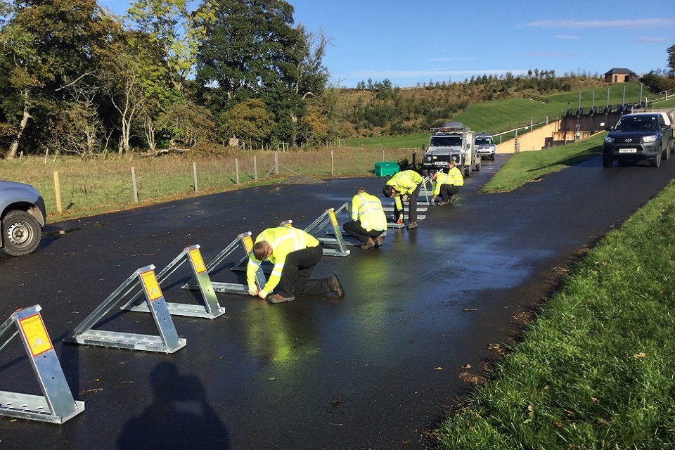 Image shows temporary barrier deployment training taking place at Morpeth.