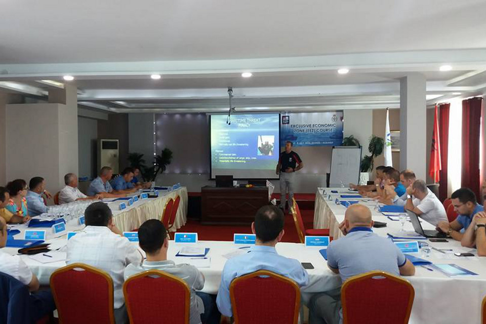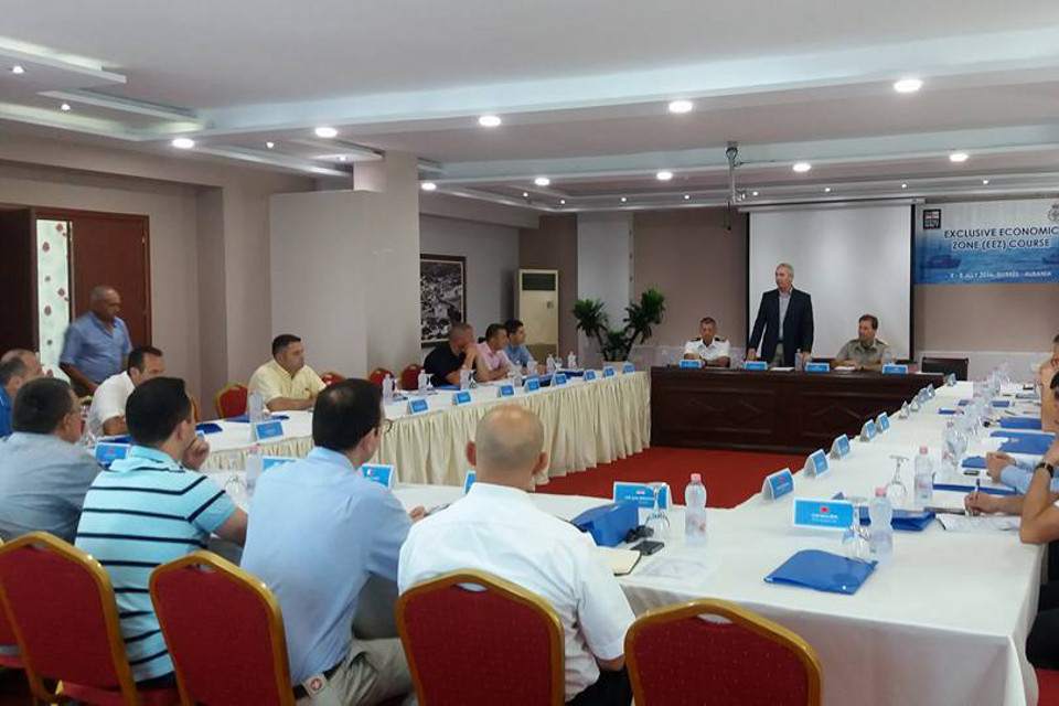 UK’s Maritime Warfare School delivered a 5 day course on exclusive economic zones (EEZ Export) in Albania, between 4 and 8 of July 2016 by the coastal city of Durres. Retired General, head of the Inter Maritime Operation Centre (IMOC) Zyber Dushku, UK’s Defence Attache LT Col Richard Perry addressed the event. LCDR Edmond Bath delivered lectures to some 30 attendees from the region.