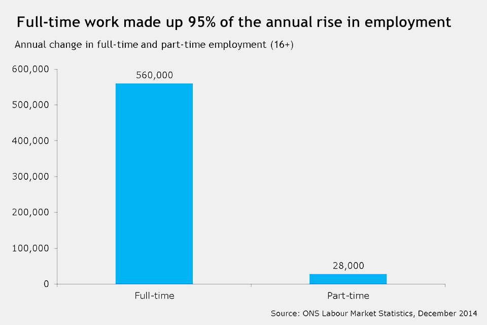 Full-time jobs accounted for 95% of the rise in employment over the past year, with private sector employment rising by 637,000.