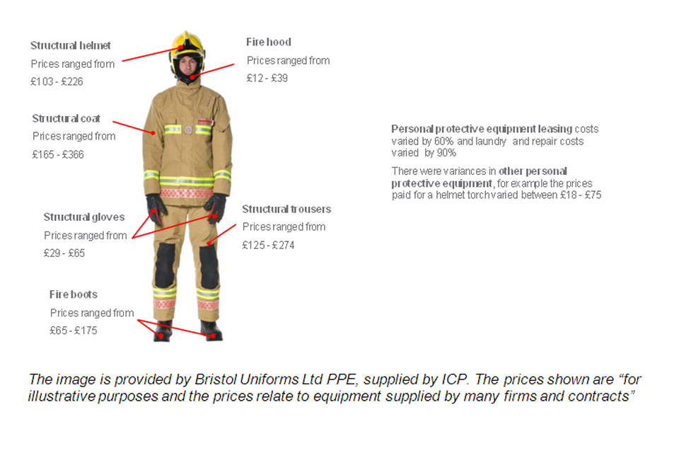 - when the same supplier was used prices varied by a quarter: for example a fire helmet can cost between £105 and £131