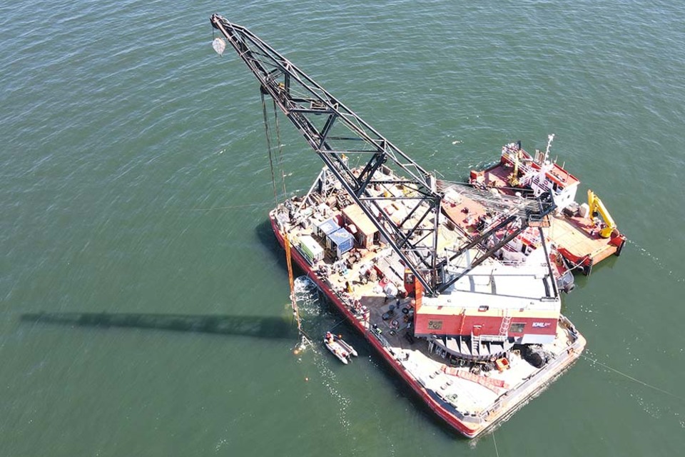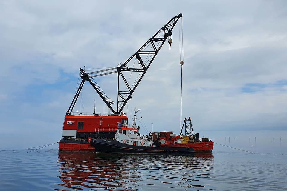 Crane barge during operation to recover fishing vessel Nicola Faith