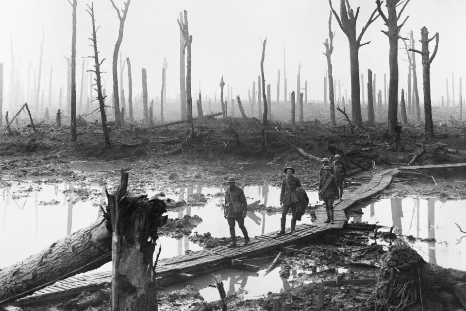 Soldiers crossing duckboards during the third Battle of Ypres on 20 October 1917 [Picture: Imperial War Museum]