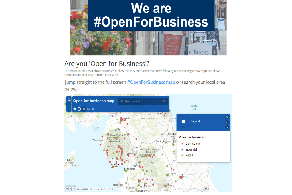 Those wanting to upload details of companies re-opening in flood-affected areas can visit the online map where they can complete a simple form with details of their business – including location and opening times.