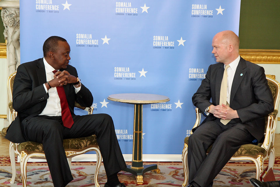 Foreign Secretary William Hague with President Kenyatta of Kenya at the London Somalia Conference