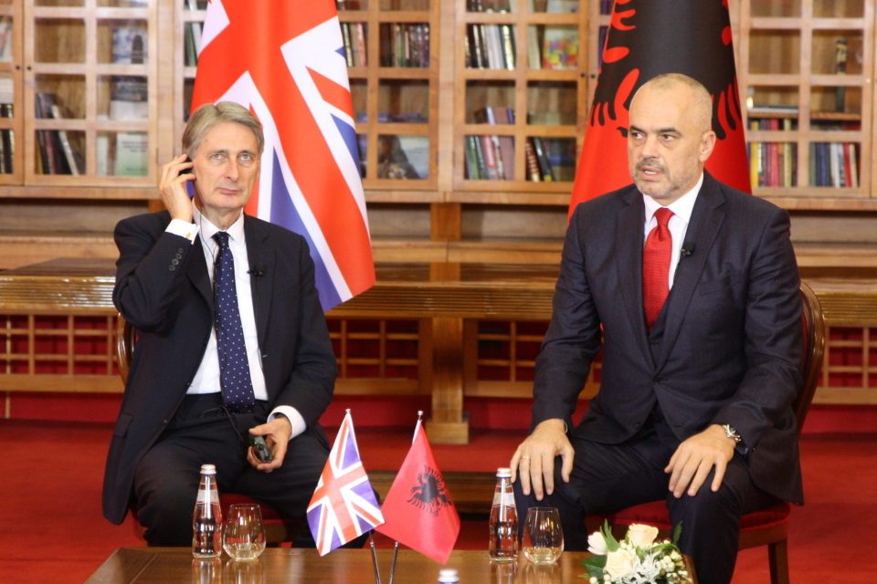 Foreign Secretary Philip Hammond with Albanian PM Edi Rama