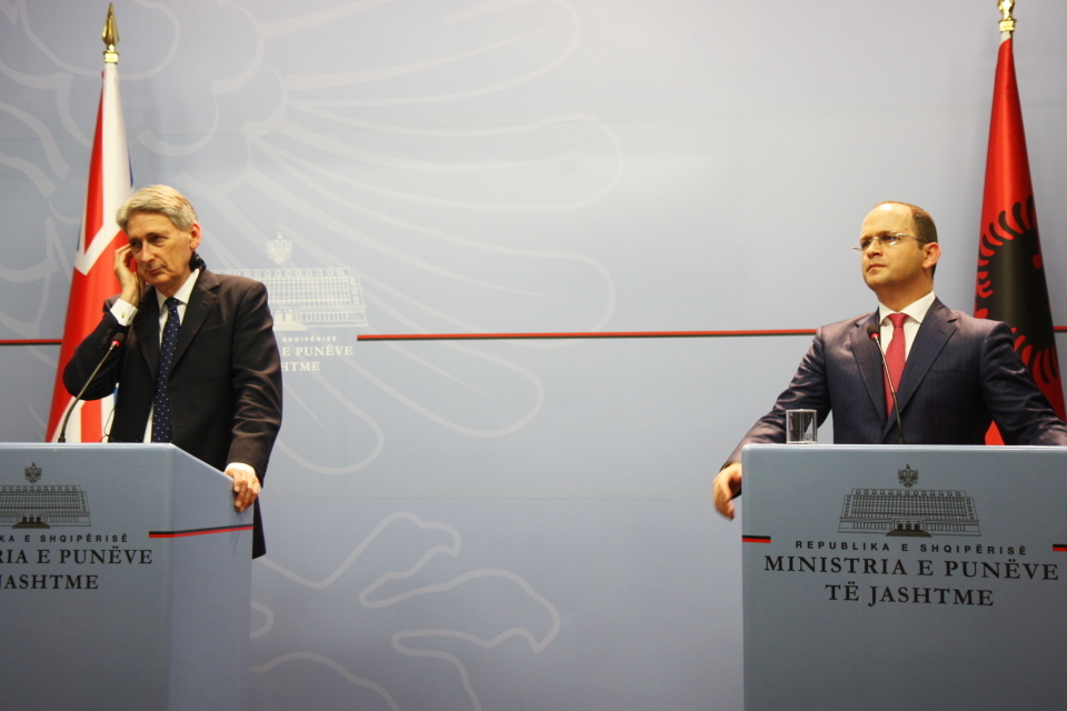 Foreign Secretary Philip Hammond with Albanian Foreign Affairs Minister Ditmir Bushati