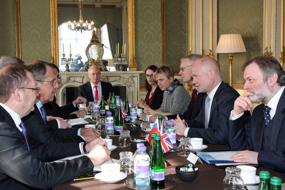 Foreign Secretary William Hague meeting Russian Foreign Minister Sergey Lavrov