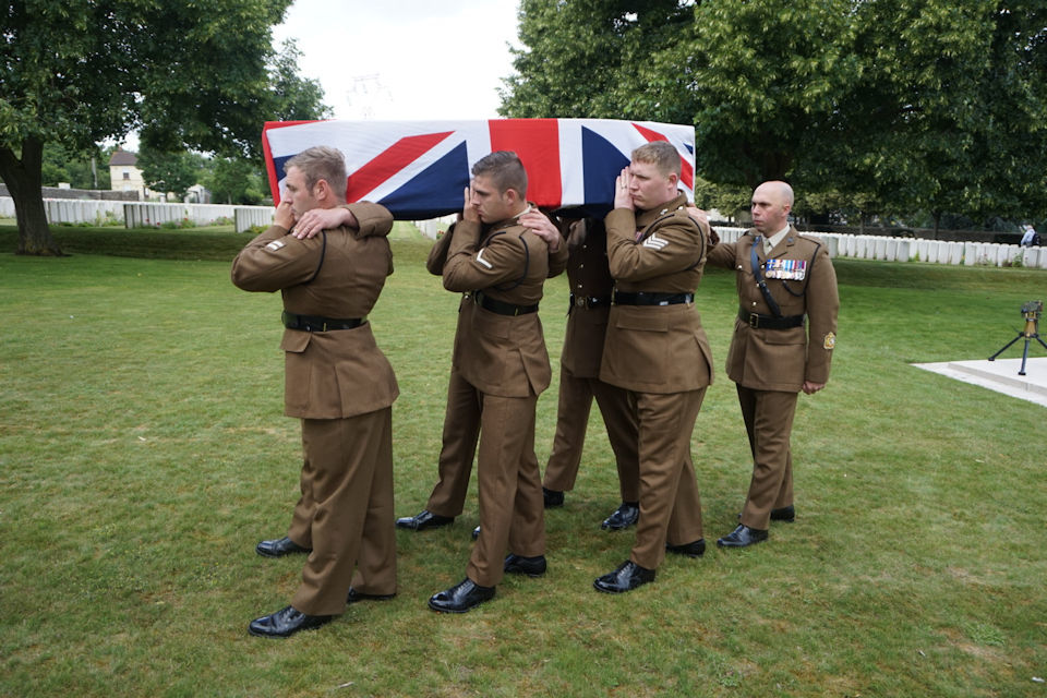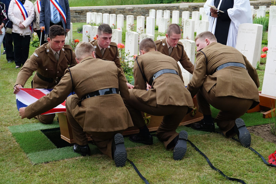 One unknown soldier of the Machine Gun Corps (MGC) and 3 unknown soldiers of unknown regiments have finally been laid to rest after they were killed during World War 1. The 4 soldiers were buried Wednesday 13 June at the Commonwealth War Graves Commission (CWGC) Loos British Cemetery, France.