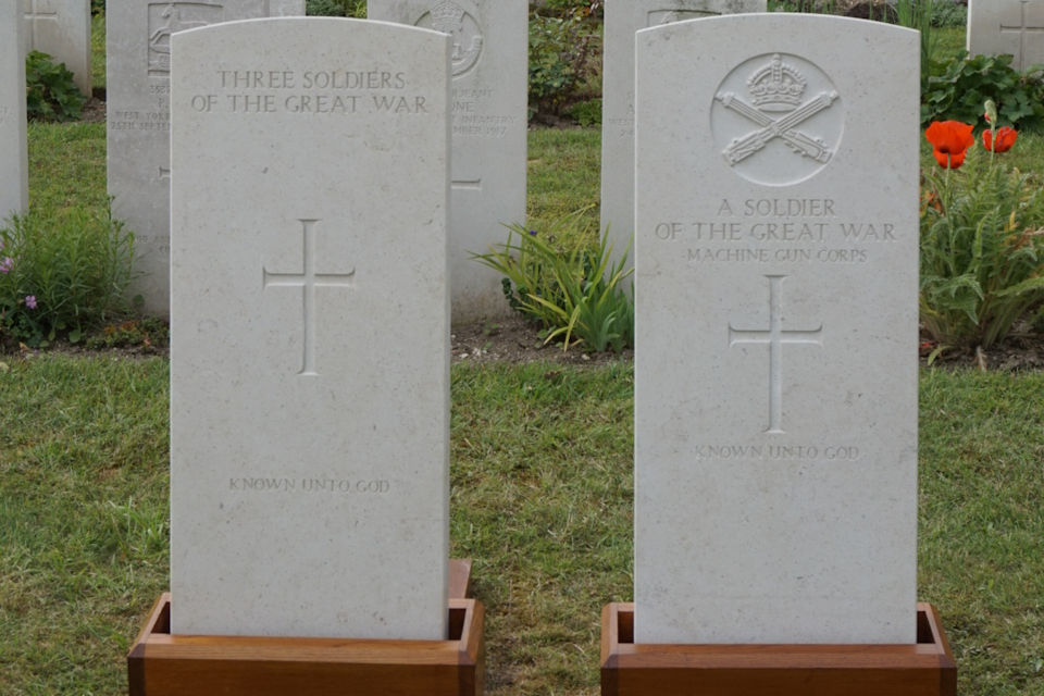 Two new headstones, one engraved with ‘Unknown Soldier of Machine Gun Corps’ and one engraved with 3 ‘Unknown Soldiers of the Great War’ have been provided by the CWGC, who will now care for their final resting place in perpetuity.