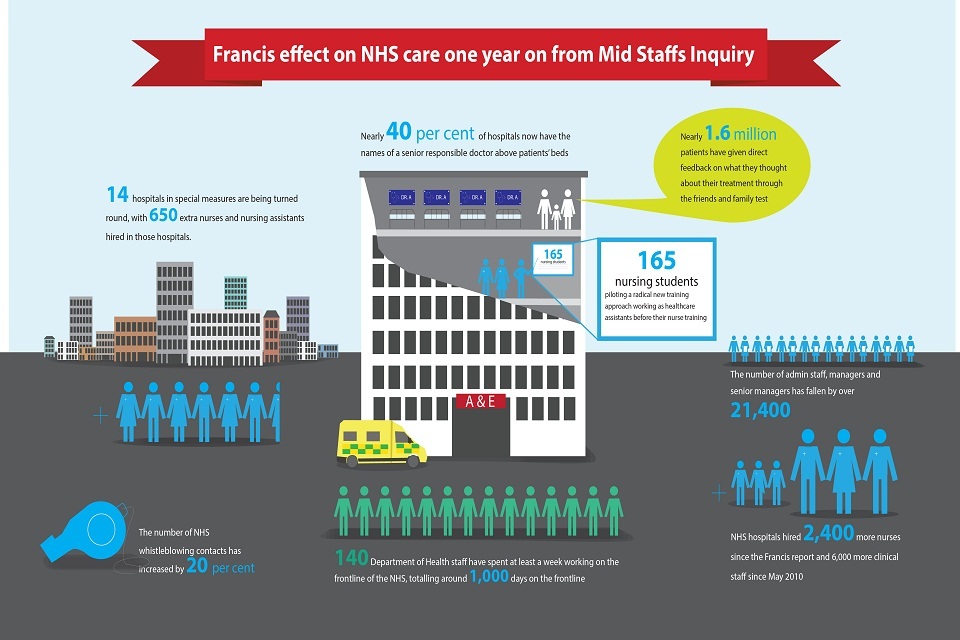‘Francis Effect’ on NHS care one year on from Mid Staffs Inquiry with 2,400 more nurses hired in the last year.