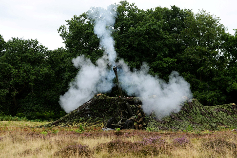 A 105mm Light Gun is fired at Stanford Training Area [Picture: Corporal Obi Igbo, Crown copyright]