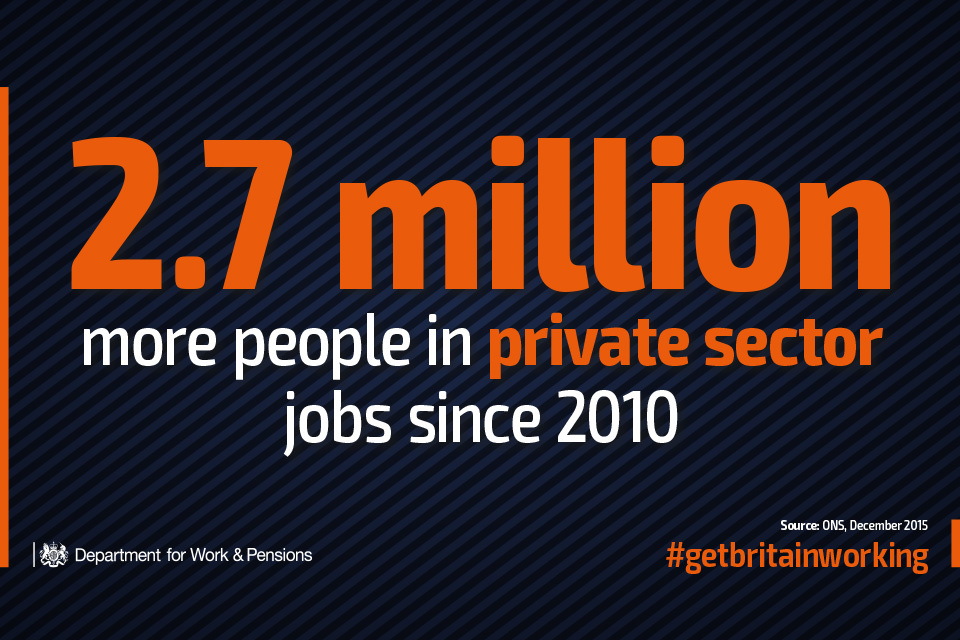 Under the government’s stewardship of the UK economy, British businesses have grown and created jobs, generating employment for an additional 554,000 people in the private sector over the last year.